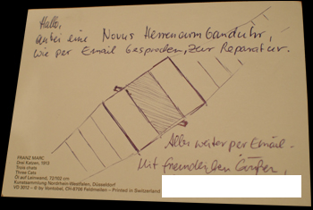 Please include a (handwritten) chit of paper with your name, return adress, email and maybe a telephone number.